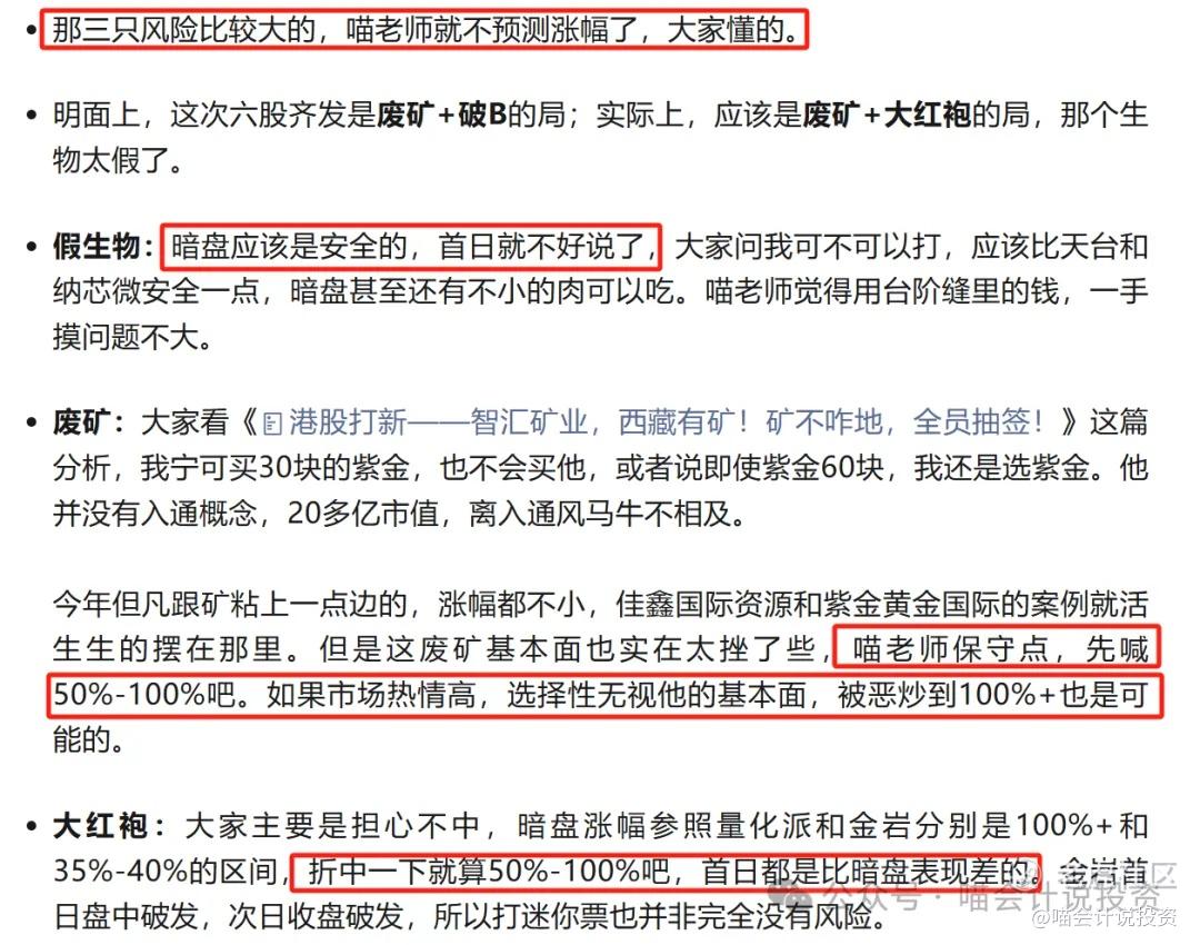 智汇矿业+100%,一早就喊了,显然比其他5家都好很多,智汇矿业的选择是最优的,已经被证实了,也是全员抽签,中不中靠运气。
