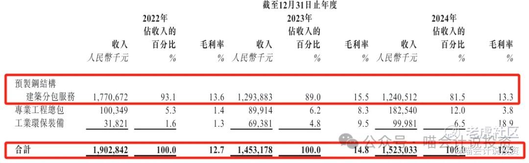 收入的绝对大头是预制钢结构,毛利率在13%+,总收入先跌后涨。