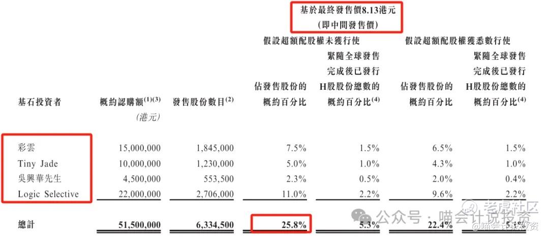 基石投资者:4家机构合计认购25.08%