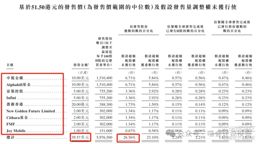 基石投资者:中视金桥等9家合计认购3957万美元