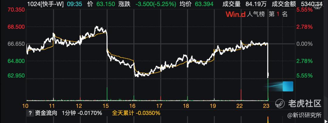12月23日,港股开盘,快手(1024.HK)股价直线下跌。截至发稿,股价62.9港元,跌5.7%。另外,网络安全指数(884133.W)上涨,截至发稿,该指数已涨0.66%。