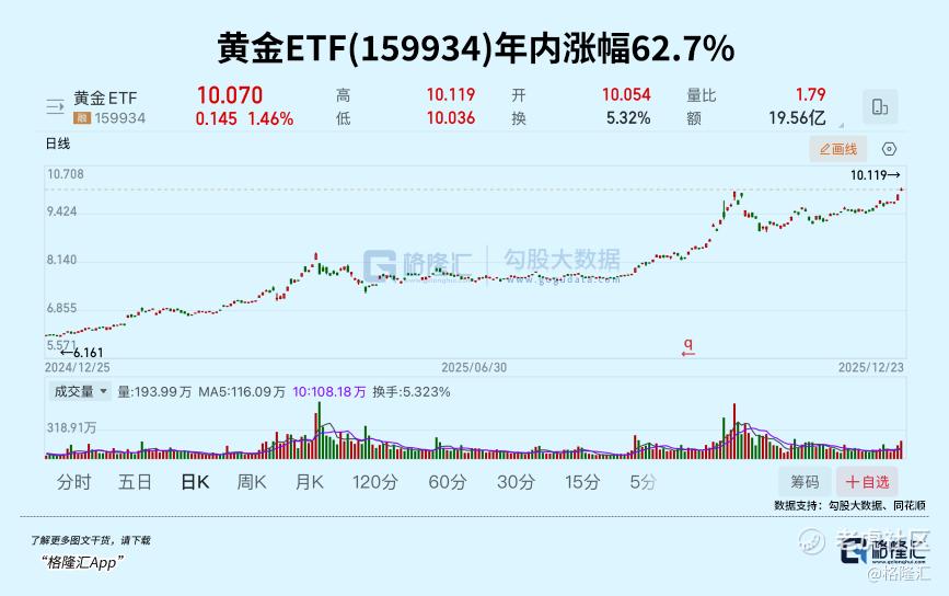 黄金ETF(159934)今日上涨,净值创历史新高;今年以来,该ETF涨幅达到62.7%,创历史新高。