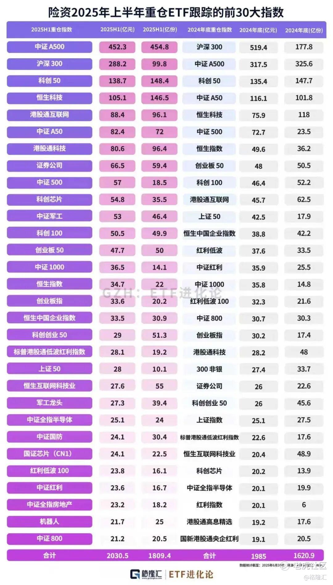 从指数选择看,变化尤为明显。上半年,险资配置的宽基指数中,中证A500指数的持仓规模首次超过沪深300,成为险资持有规模最大的宽基指数。