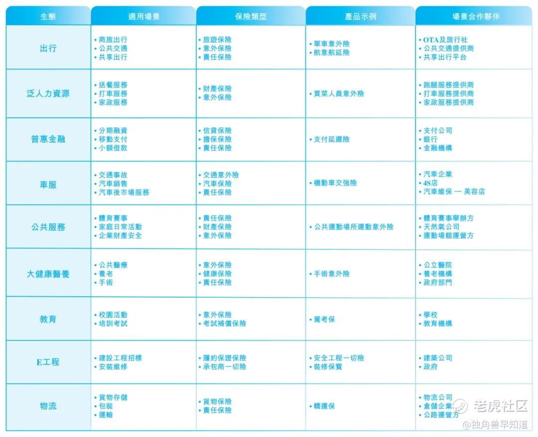 白鸽在线的产品横跨例如出行、健康及公共服务等九种生态圈,确保采用有效方法来解决多个生态系统中各种场景的不同风险,而不是狭隘地专注于特定场景中的单一类型风险。公司已将业务组合扩展到以下九个生态系统: