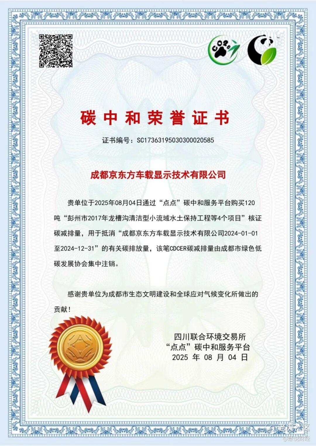 在“双碳”目标引领下,汽车产业正成为节能减排的重要领域。京东方精电前瞻布局,郑重承诺在2050年前实现自身运营碳中和,已构建从董事会到业务执行层的三级治理架构,系统推进碳核算、节能创新、绿色能源应用及光伏建设等项目。成都车载显示基地相继获评“四川省绿色工厂”、“成都市近零碳排放工业企业”,是京东方精电实现绿色发展的又一标杆案例,目前该基地正在积极申报“国家级绿色工厂”,将以领先实践持续推动企业绿色发展。