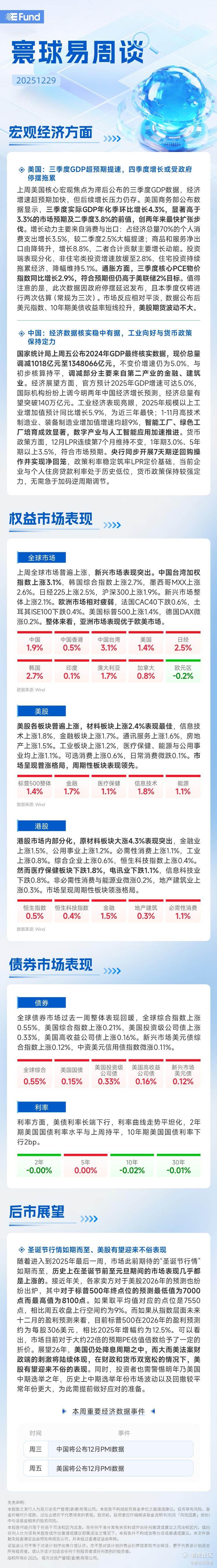 寰球易周谈 | 上周亚洲权益市场表现优于欧美,美国三季度GDP超预期提速