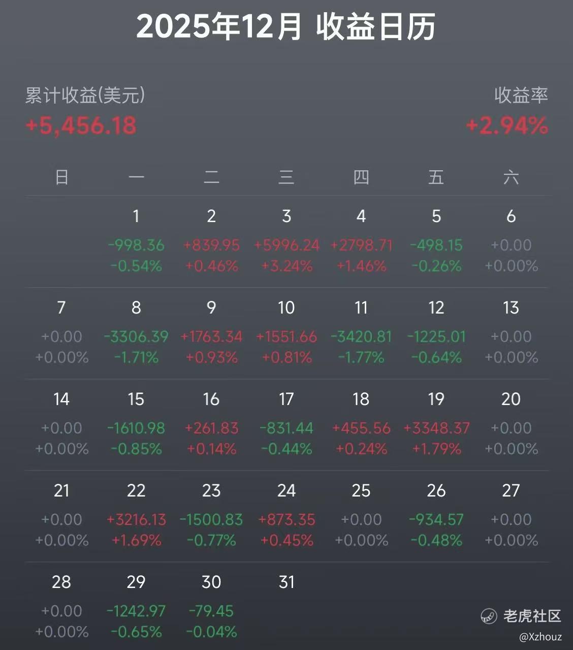 [美金]12月份账户基本收益持平,基本完成上两个月的目标:“年底稳收益为主”。账户上个月就开始没有怎么开仓sell put了,因为到年底要转一部分仓位到另外账户,所以明年开始这个账户更新的时候资金体量会变小。