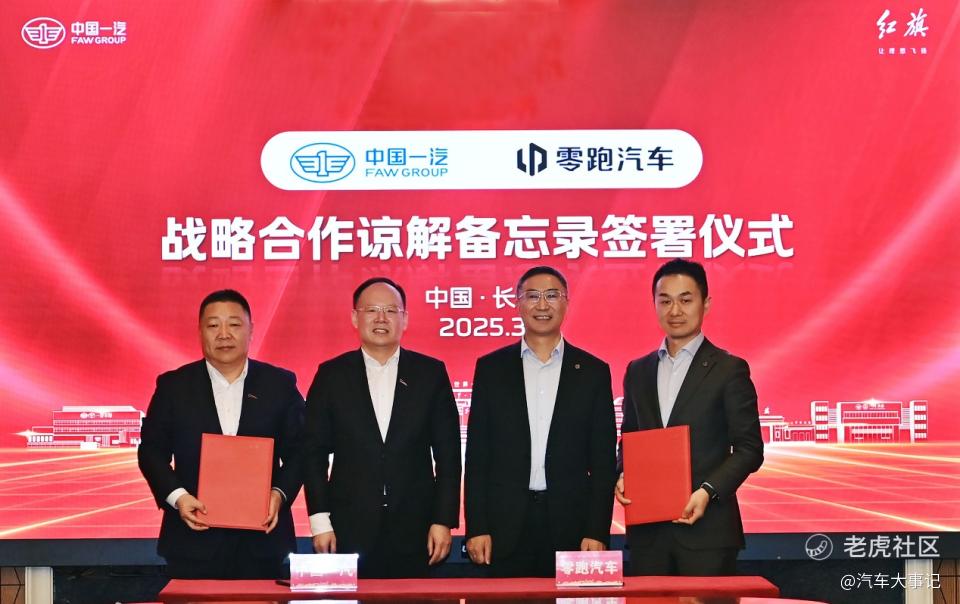 12月28日,中国一汽与零跑汽车在杭州举行签约仪式,中国一汽全资子公司一汽股权投资(天津)有限公司和一汽旗新动力(长春)科技有限公司分别与零跑汽车签署投资协议和合作协议。