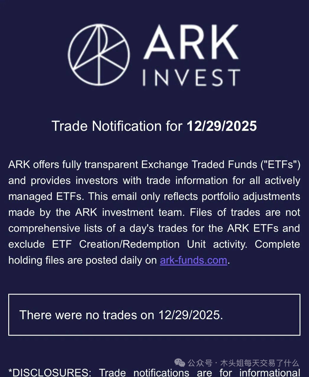 今天木头姐啥也没有交易,就等来一封邮件。大概率是出去度假了。毕竟对他们来说上班就是上班,放假就是放假,人生是来体验的,感受当下的生活。