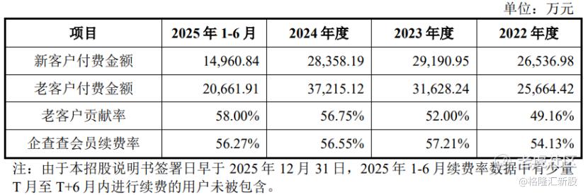 此外,尽管企查查的老客户贡献付费金额及贡献率稳步提升,但2024年公司的新客户付费金额、企查查会员续费率均同比下降。