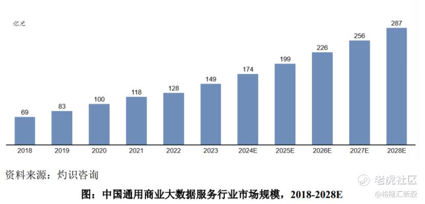 其中,2023年中国通用商业大数据服务市场规模为149亿元,预计到2028年将增长至287亿元,2023年至2028年的复合增长率为14%。