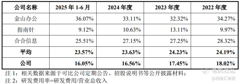 公司研发费用率与同行业可比公司对比情况,图片来源于招股书