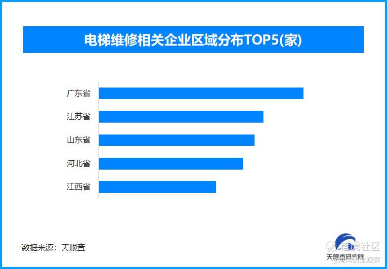 天眼查专业版工商信息数据显示,截至目前我国现存在业、存续状态的电梯维修相关企业超6.8万家。从区域分布来看,广东省、江苏省、山东省电梯维修相关企业数量位居前列,分别为超7800余家、6300余家和6000余家。