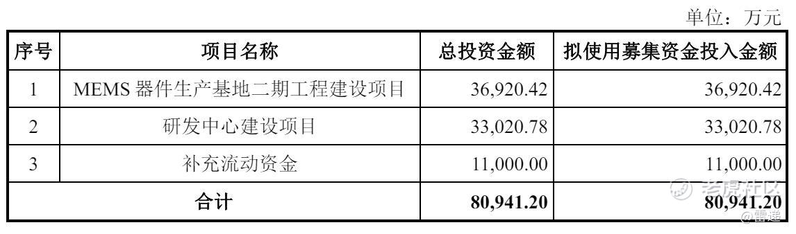 锐石创芯计划募资8亿元,其中,3.7亿元用于MEMS 器件生产基地二期工程建设项目,3.3亿用于研发中心建设项目,1.1亿用于补充流动资金。