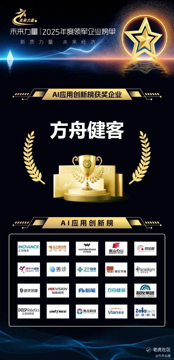 2025“未来力量”领军企业榜,是一次行业对创新方向的重要前瞻。此次方舟健客的上榜,不仅是对公司“AI赋能,蓄力创新”发展理念的肯定,更彰显了市场对医疗健康产业未来发展前景的信心。
