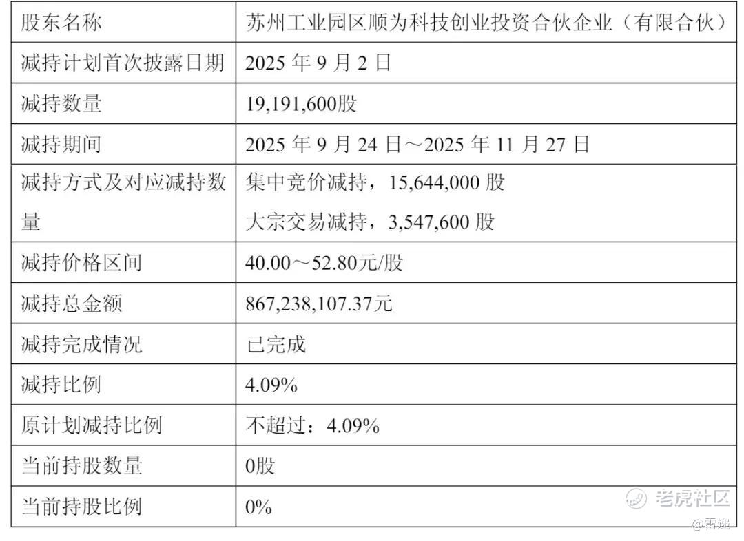 2025年11月28日,龙旗科技发布公告称,截至2025年11月27日,苏州顺为通过集中竞价交易及大宗交易方式减持公司股份19,191,600股,占公司总股本的4.09%。