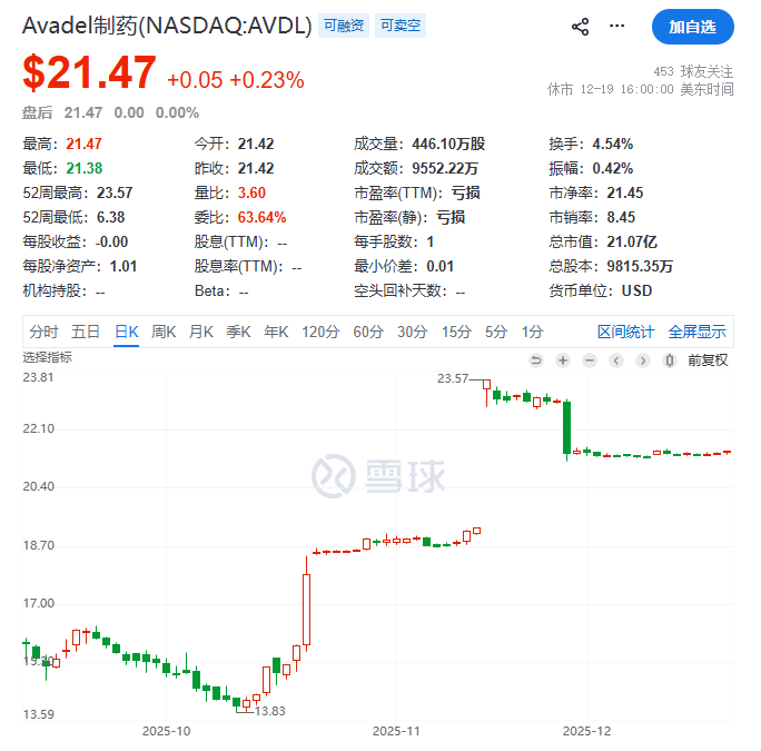 无独有偶,几乎在Metsera被收购的同一时间,另一家上市医药公司Avadel制药(NASDAQ:AVDL)也被两家公司竞相收购: