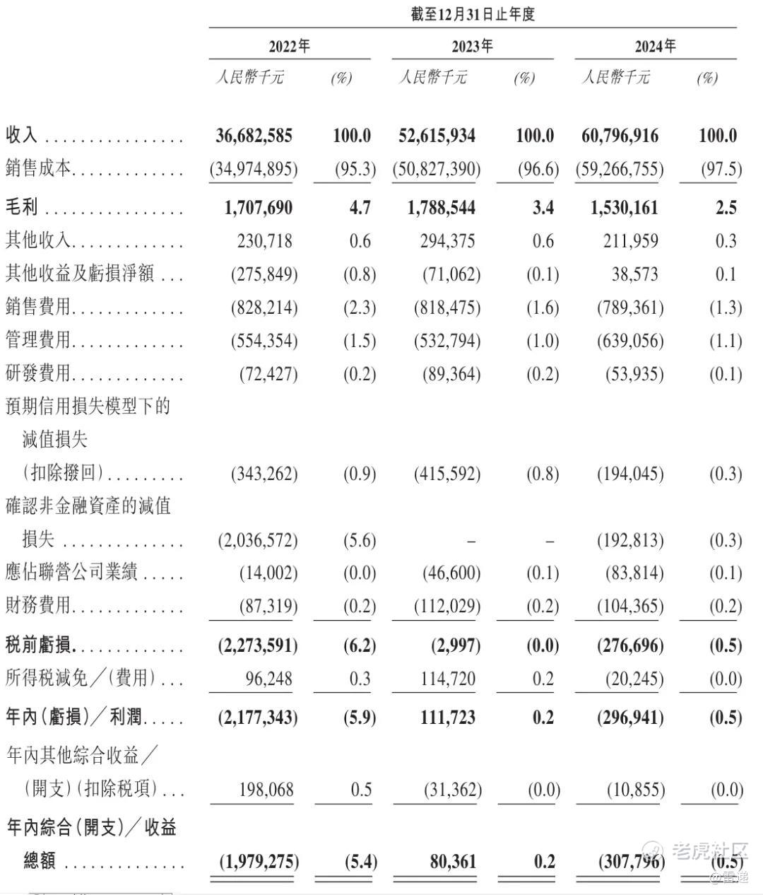 蓝标2022年、2023年、2024年年内利润分别为-21.77亿元、1.12亿元、-3亿元;年内利润率分别为-5.9%、0.2%、-0.5%。