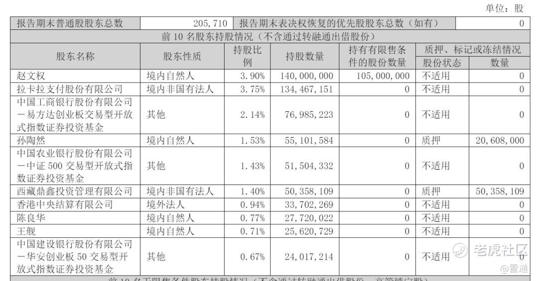 赵文权持股4% 拉卡拉是股东