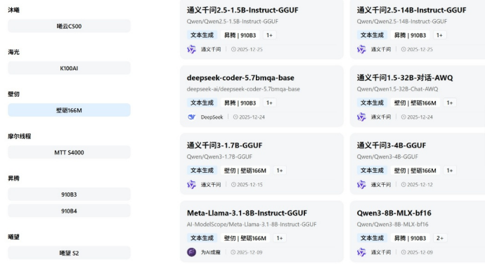 范式智能$第四范式(06682)$ 近日宣布,「信创模盒」ModelHub XC已完成百余款主流模型在壁仞科技$壁仞科技(06082)$ 166M芯片上的适配与认证,覆盖文本生成、文生视频、多模态对话等多种AI任务类型。预计未来半年内,将持续推进模型适配更新,进一步丰富基于国产算力的即用模型生态,为开发者与企业用户提供更广泛的部署选择。在适配过程中,壁仞GPU展现出优秀的性能表现,尤其在承载deepseek、Qwen等主流模型时运行稳定高效,体现了其在AI推理与训练场景中的适用性。