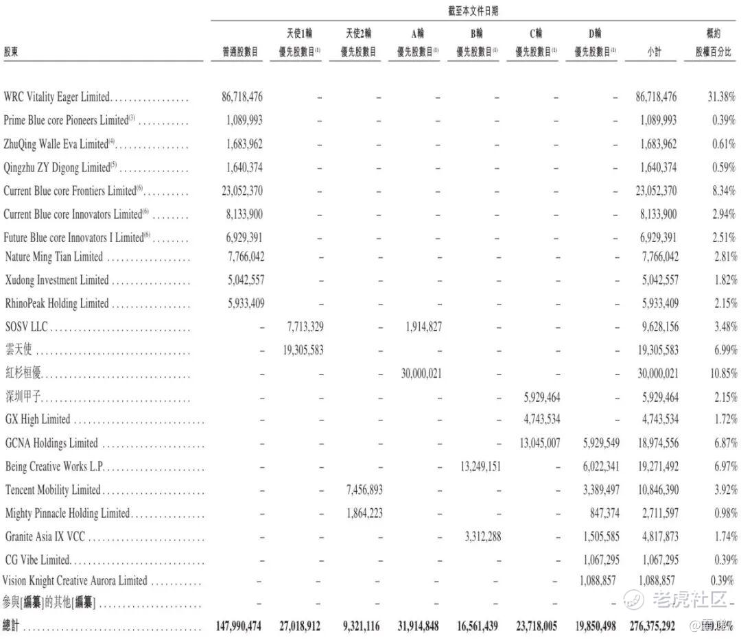 红杉桓优持股为10.85%,深圳甲子持股为2.15%,GX High Limited持股为1.72%,GCNA Holdings持股为6.87%,Being Creative Works L.P持股为6.97%,Tencent Mobility持股为3.92%,Mighty Pinnacle持股为0.98%,Granite Asia IX VCC持股为1.74%,CG Vibe持股为0.39%,Vision Knight Creative Aurora持股为0.39%。