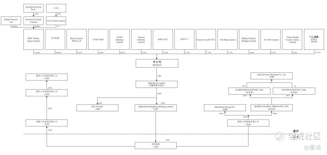 xTool创始人、董事长、首席执行官兼执行董事王建军有权通过WRC Vitality Eager Limited(一家由Freedom EvoTech Limited、JinQiu Tenacity Ltd及Fly EvoTech Limited分别拥有88.06%、10.94%及1%的公司)行使公司已发行股本总额约31.38%的表决权。