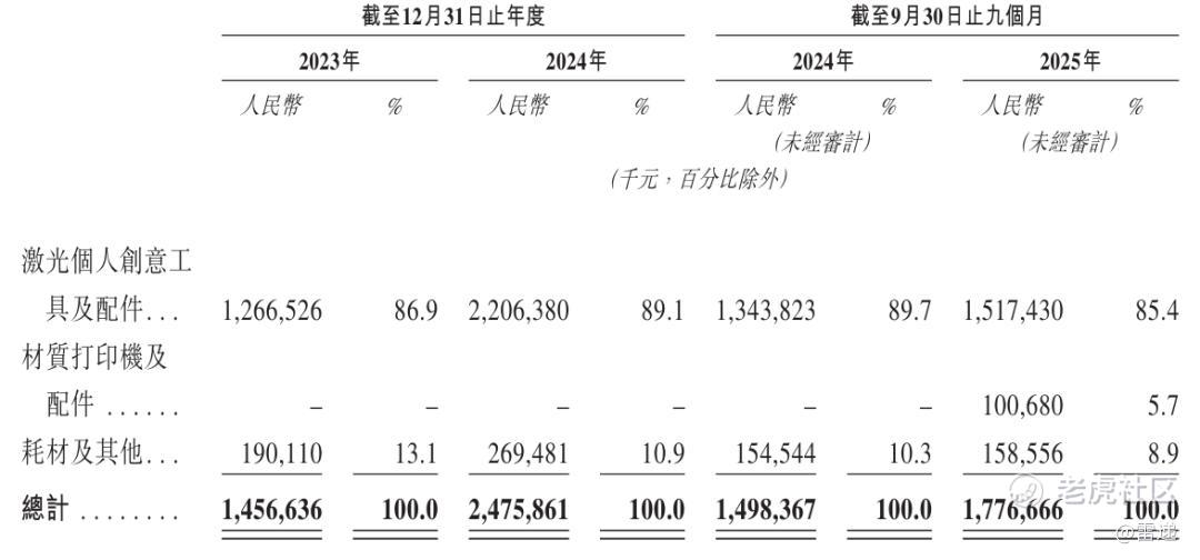 xTool在2025年前9个月激光个人创意工具及配件收入为15.17亿元,占收入的比例为85.4%;材质打印机及配件收入为1亿元,占比为5.7%;来自耗材及其他收入为1.59亿,占比为8.9%。