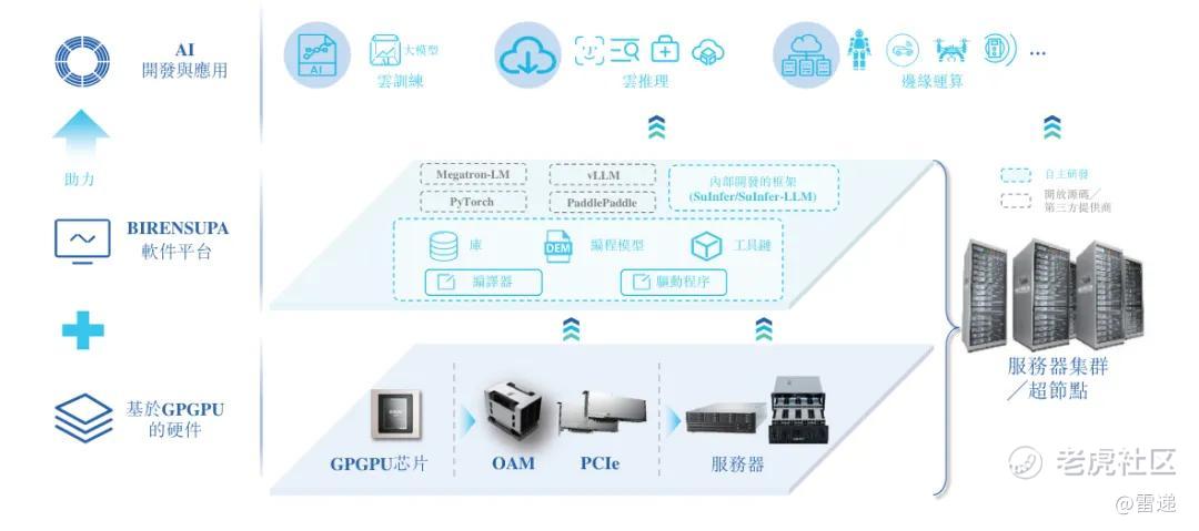 壁仞科技的解决方案建立在五大支柱之上:自主研发的GPGPU架构、系统级芯片(「SoC」)设计、硬件系统、软件平台及集群大规模部署优化。