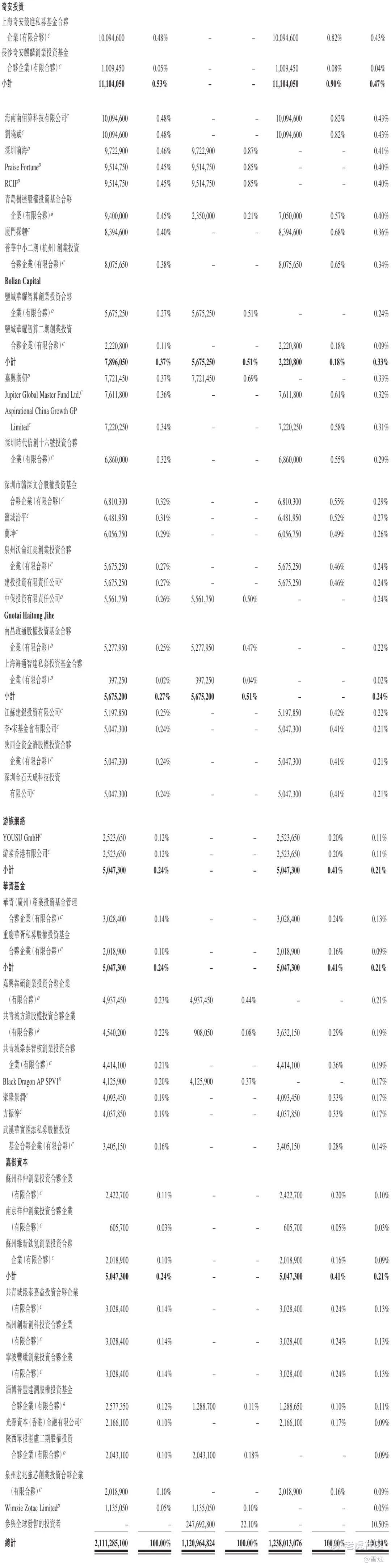 瑞誉资本持股0.92%,3W Global持股0.86%,MSA Growth持股为0.81%,南通江海基金持股为0.8%,高榕资本持股0.77%,Champion Forest持股为0.72%,苏州聚源持股为0.69%,共青城升和持股为0.69%,万慧投资有限公司持股为0.65%,智汇独角兽持股为0.62%,BAI GmbH持股为0.61%,上海金浦持股为0.52%,苏州耀途持股为0.49%;