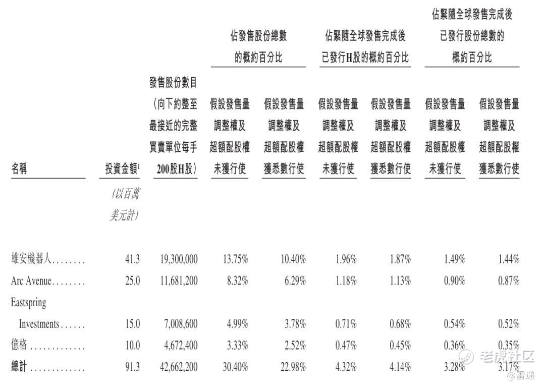 极智嘉基石投资者分别为雄安机器人、Arc Avenue、保诚旗下国际顶级长线投资机构Eastspring Investments、亿格,一共认购9130万美元。其中,雄安机器人认购4130万美元,是最大的基石投资者。