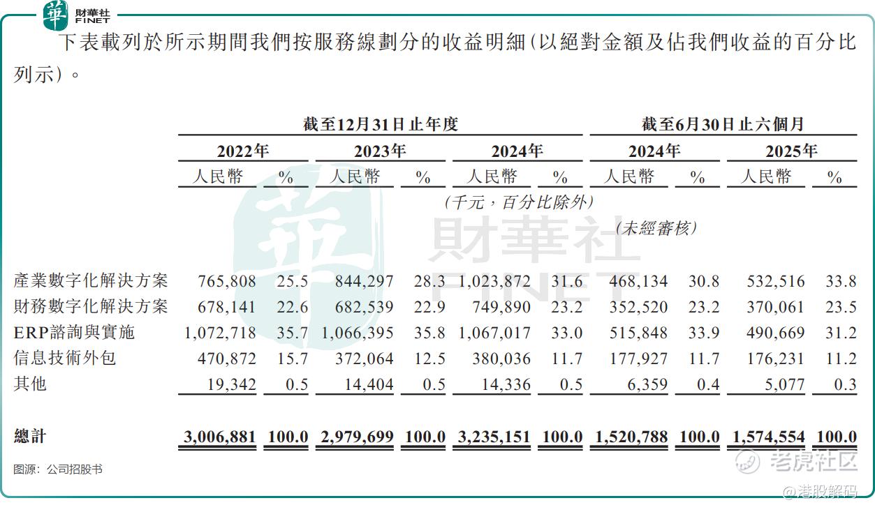 招股书显示,公司四大业务板块分化明显:作为传统核心的ERP咨询与实施业务,正陷入增长停滞,2022-2024年收入近乎零增长,2025年上半年更是同比下降4.88%。核心问题出在两个方面:一是传统ERP市场渗透率已达瓶颈,增长空间见顶;二是国产替代浪潮下,公司长期依赖的Oracle、SAP等海外ERP体系需求减少,而自身在国产ERP实施领域的竞争力还没跟上,直接面临“替代冲击+增长瓶颈”的双重压力。