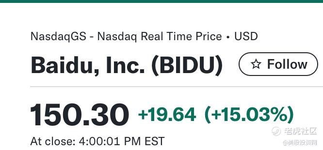 $百度(BIDU)$ 美股受此利好提振,股价狂飙超过15%。与此同时,港股“国产GPU第一股”壁仞科技的首秀翻倍大涨,也极大地带动了美股市场对中国AI和芯片赛道的追捧。