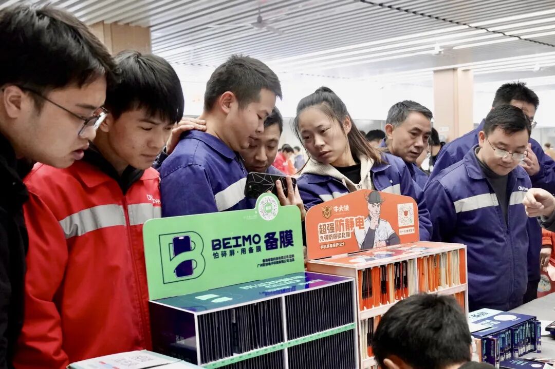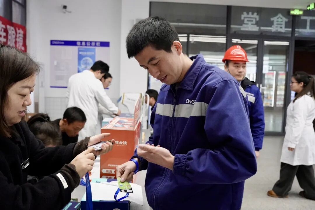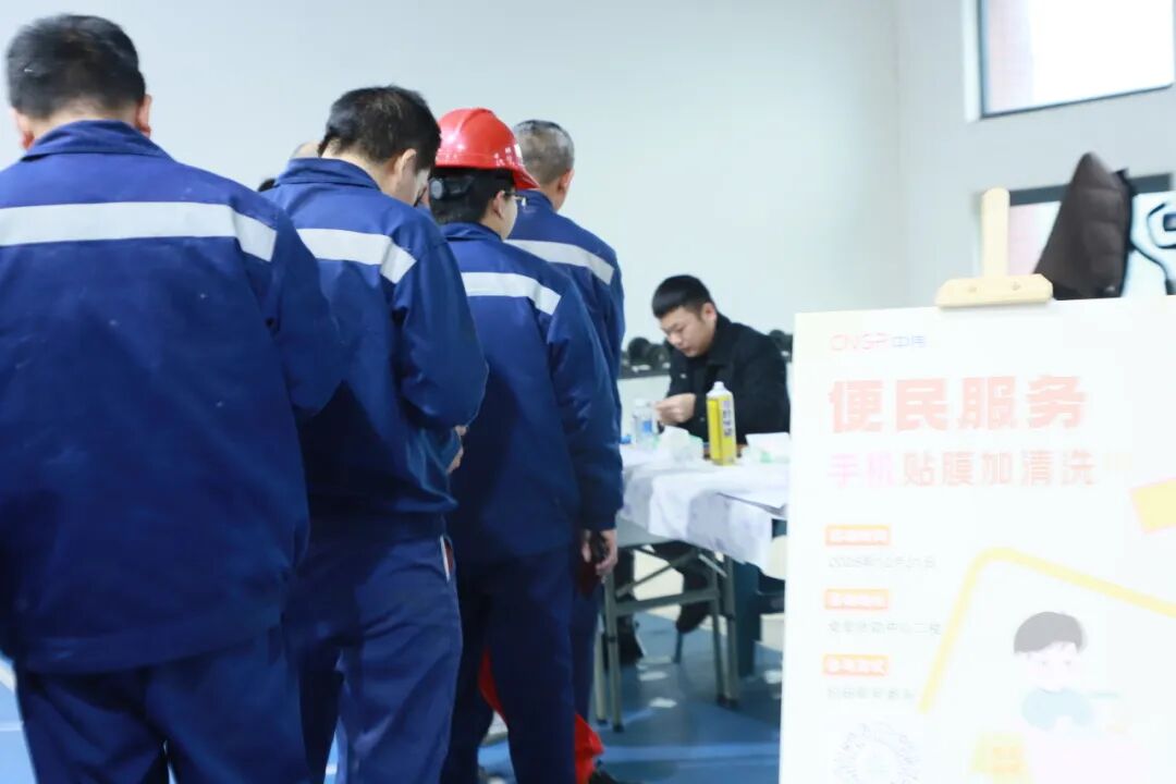 中伟开阳产业基地则以“元旦启新岁,焕新赴征程”为主题,打造了一场贴心实用的迎新活动。四大特色服务站点同步开放,为全体员工送上贴心关怀与新年祝福。手机焕新体验站便吸引大批员工驻足,工作人员现场提供精细化手机贴膜服务,除尘、对位、覆膜一气呵成,在场员工还能随心挑选折叠支架、防摔绳等实用配件,为日常使用增添满满便利。眼镜养护精修站,更显周到贴心,工作人员操作清洁设备,为员工的眼镜进行深度清洁保养,高效清除镜片上的污渍。站点同步提供眼镜调校矫正、视力度数检测服务,工作人员根据检测结果,分享科学用眼、视力保护的实用知识,全方位守护员工的用眼健康。