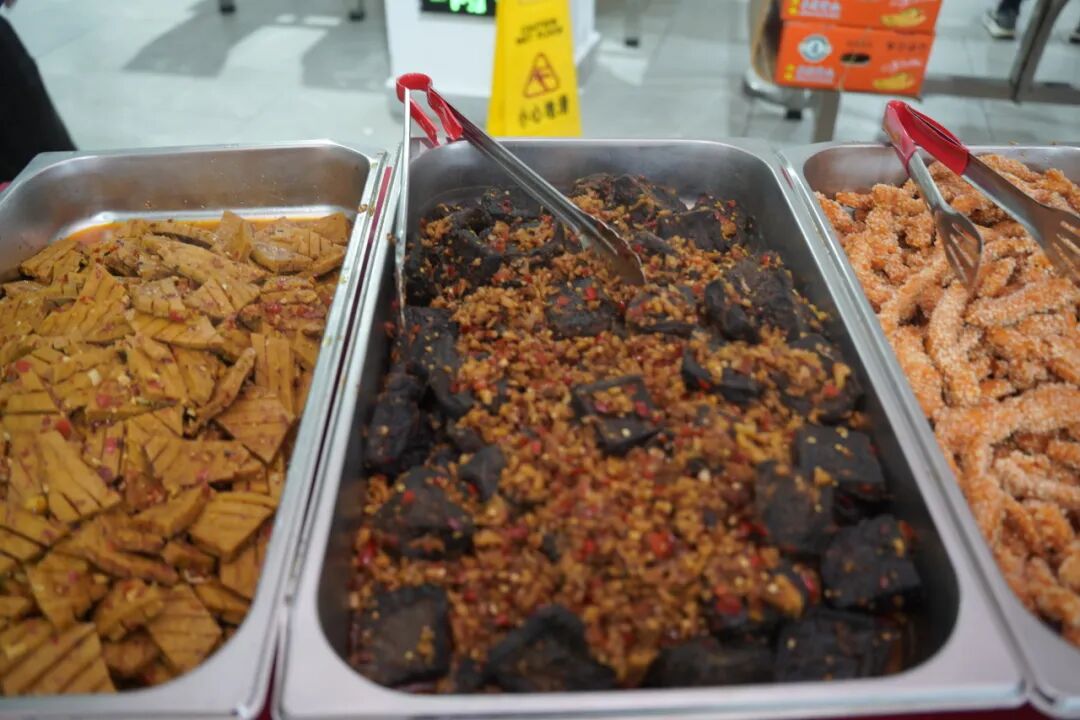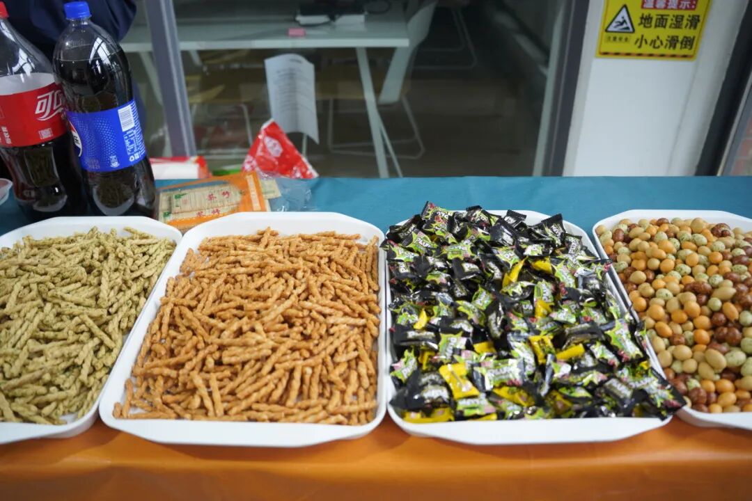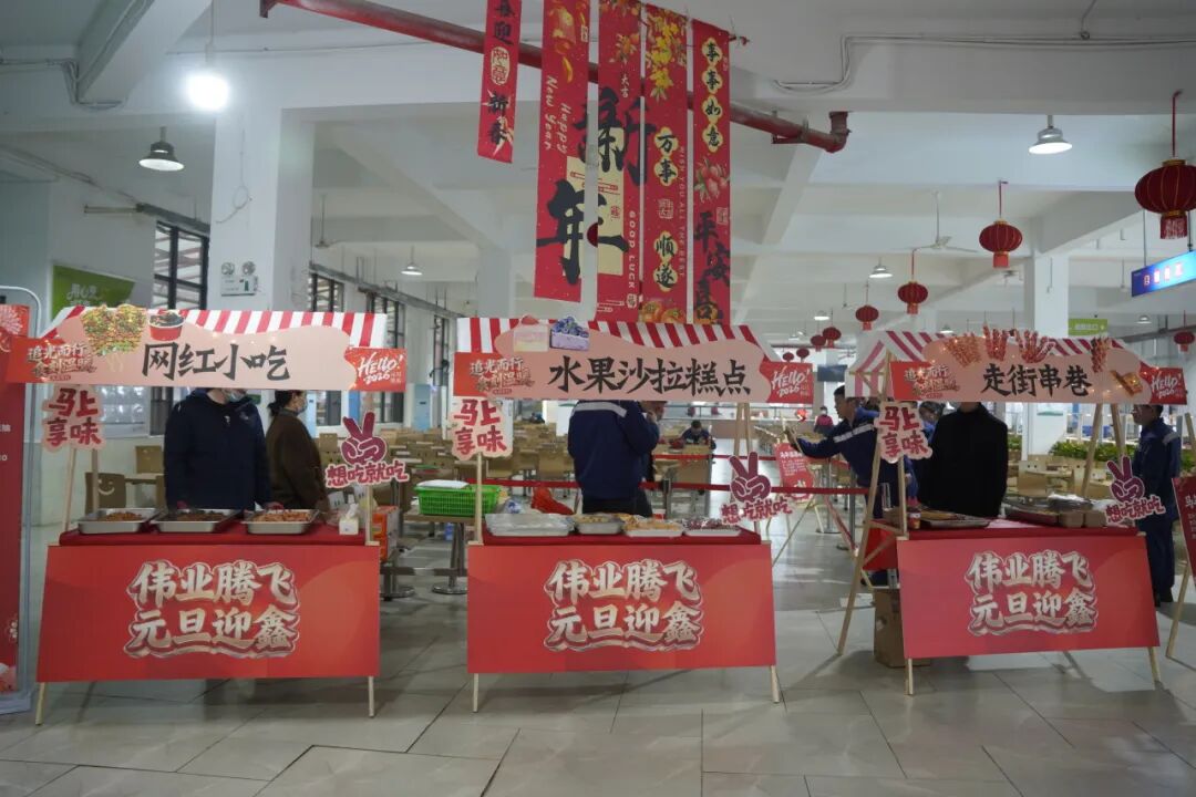 随着暖意持续升温,“伟业腾飞 元旦迎鑫”活动于午餐时段在食堂火热启幕,瞬间点燃了员工们的参与热情。现场红彤彤的灯笼与彩带交织悬挂,营造出浓郁的节日氛围。免费小吃区里,各类美食琳琅满目——有清甜爽口的时令水果,软糯香甜的花式糕点,酥脆可口的特色炸物,香气扑鼻的本地臭豆腐、兰花干、烤串等,让人垂涎三尺、应接不暇。