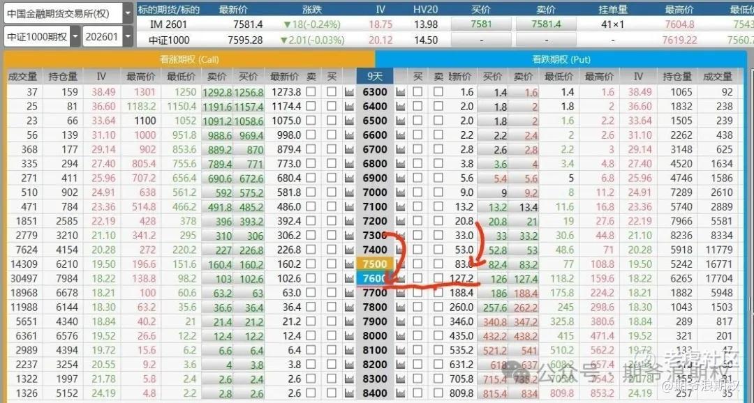 有的同学说,可不可以提高回报?可以的,但有一个前提,是你很坚信,1月到期的时候,中证1000收市不会超过7600,则可以调整行权价如下: