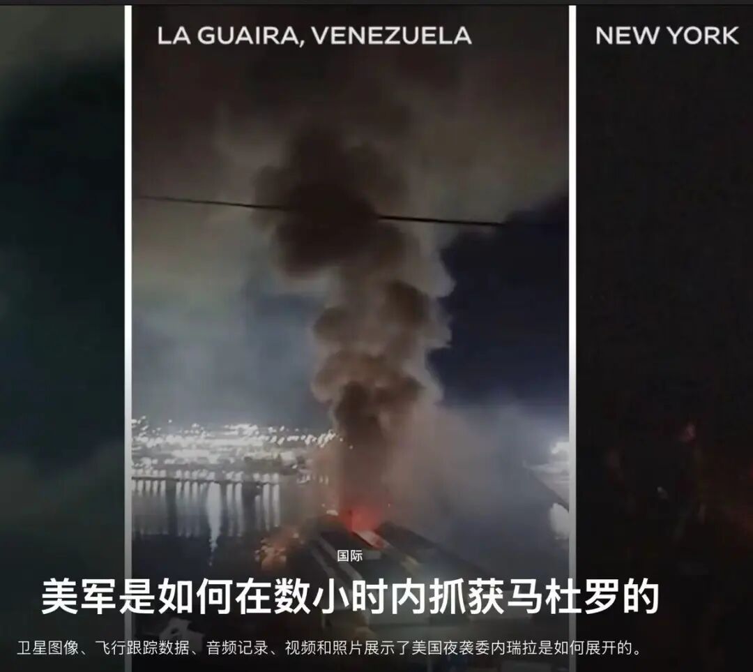 加拉加斯时间凌晨2点左右,该市大片地区陷入黑暗——特朗普后来在一次新闻发布会上吹嘘了这一刻。居民们从阳台和窗户拍摄视频,当时美国直升机在头顶轰鸣而过,爆炸声开始震撼首都。