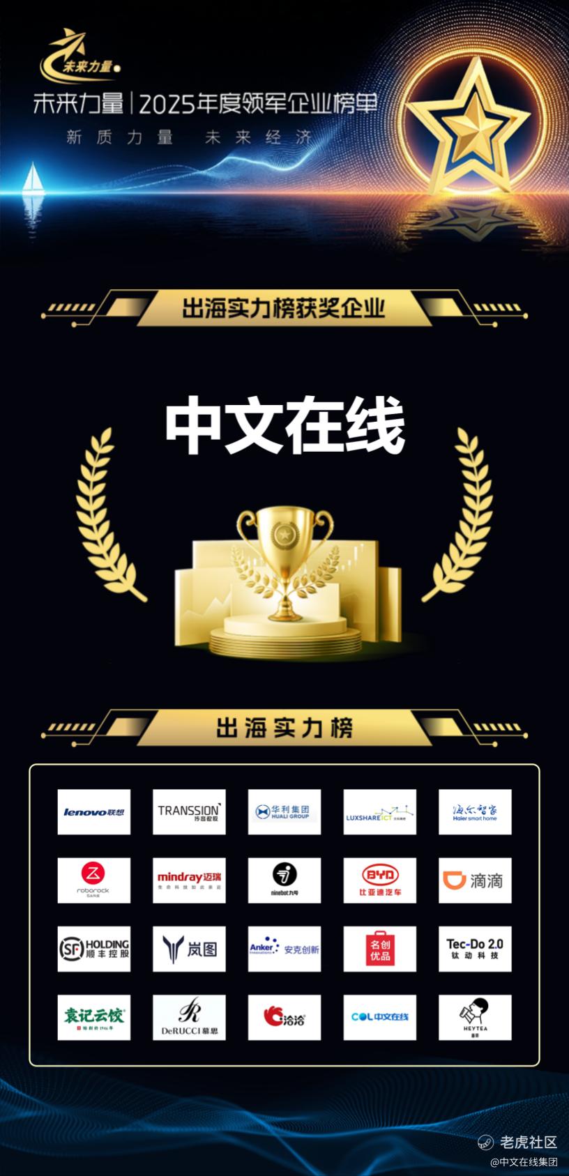 近日,证券之星发布2025年“未来力量”领军企业榜单,中文在线集团入选“出海实力榜”。该榜单聚焦在全球市场具备成长潜力与长期竞争力的中国企业,此次入选,是对集团近年来国际化布局与出海成果的阶段性认可。