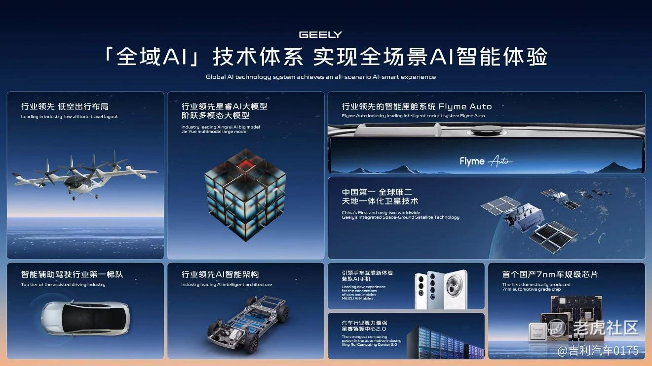 在全球汽车产业智能电动化变革下,吉利汽车集团坚持核心技术自研与创新驱动,以技术硬实力驱动韧性增长。2025年吉利汽车集团发布了行业首个“智能汽车全域AI”技术体系,并将AI技术应用于架构、动力、底盘、辅助驾驶、座舱等智能汽车全域,推出了GEA Evo、浩瀚-S等AI架构,实现雷神AI电混2.0、AI数字底盘、神盾金砖电池、千里浩瀚辅助驾驶系统、Flyme Auto 2.0、Eva超拟人情感智能体等一系列全域AI技术成果量产上车,构建起全方位领先的技术护城河,成为全球唯一完成全域AI智能化布局的车企。