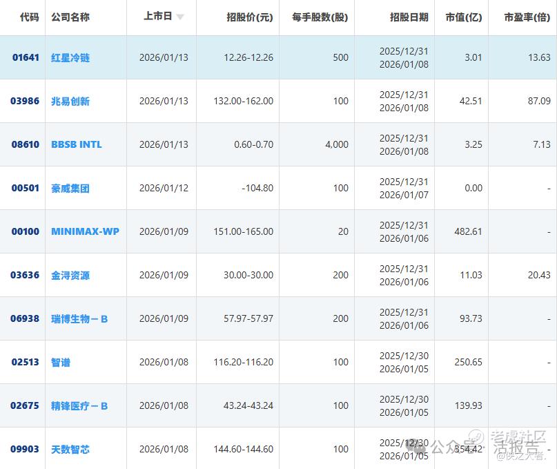 瑞博生物-B(6938.HK) 招股中,招股日期为2025年12月31日至2026年1月6日,并预计于2026年1月9日在港交所挂牌上市,联席保荐人为中金公司、花旗。