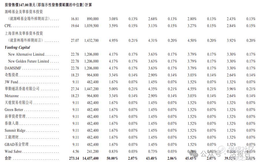 本次发行以机制B分配,公开固定10%,无强制回拨。国配引入17家基石投资者(云峰基金、CPE源峰、景林资产、Dymon Asia、奇点资产、3W Fund、华勤技术、TCL、OPPO创始人陈明永、小米集团、新华资管、泰康人寿、Summit Ridge、工银理财、大湾区共同家园、观博资本),认购约23.32亿港元,占全球发售股份的50%。