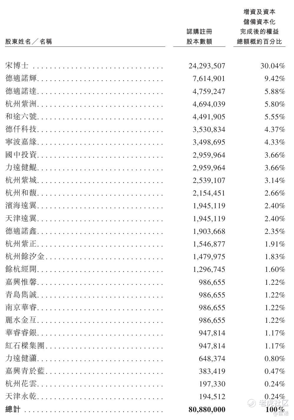 宋宁博士持股30.04%,德适诺辉持股为9.42%,德适诺达持股为5.88%,德仟科技持股为4.37%,德适诺鑫持股为2.35%。
