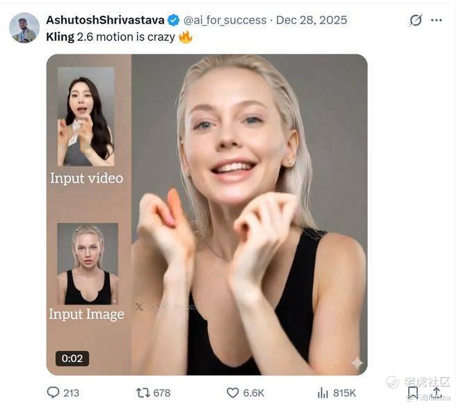 在传统业务增长乏力的背景下,AI成为快手押注的重要方向。2024年6月,快手推出AI视频生成模型可灵,经过10个月超20次的迭代,终于在2025年12月推出的2.6版本中实现关键突破,其核心功能“Motion Control”(动作控制)在海外市场引发病毒式传播,为陷入困境的快手带来了新的希望。