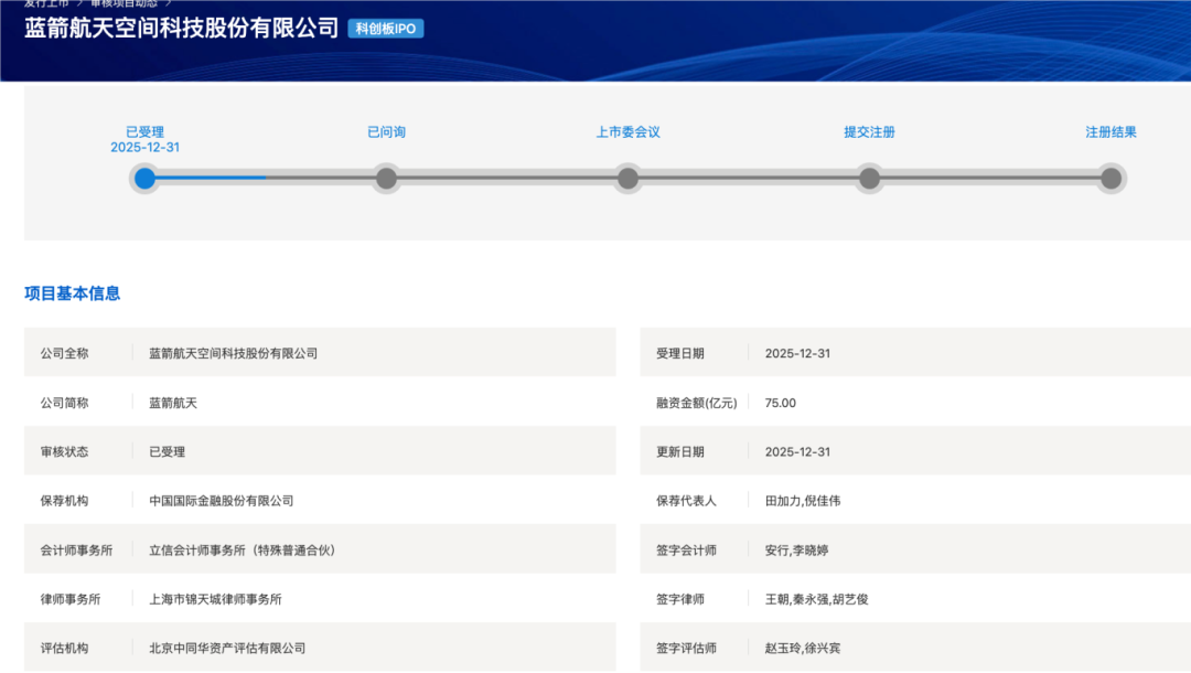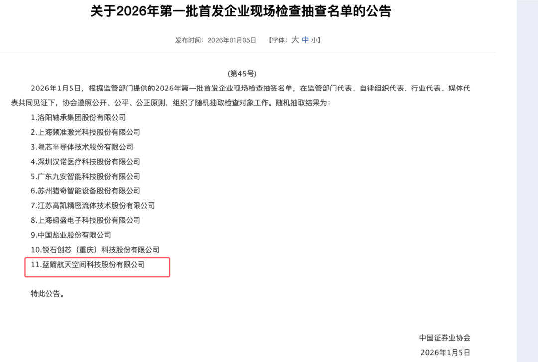 蓝箭航天被抽中:2026 第一批首发企业现场检查名单公布,创业板 4 家科创板 5 家主板 1 家!