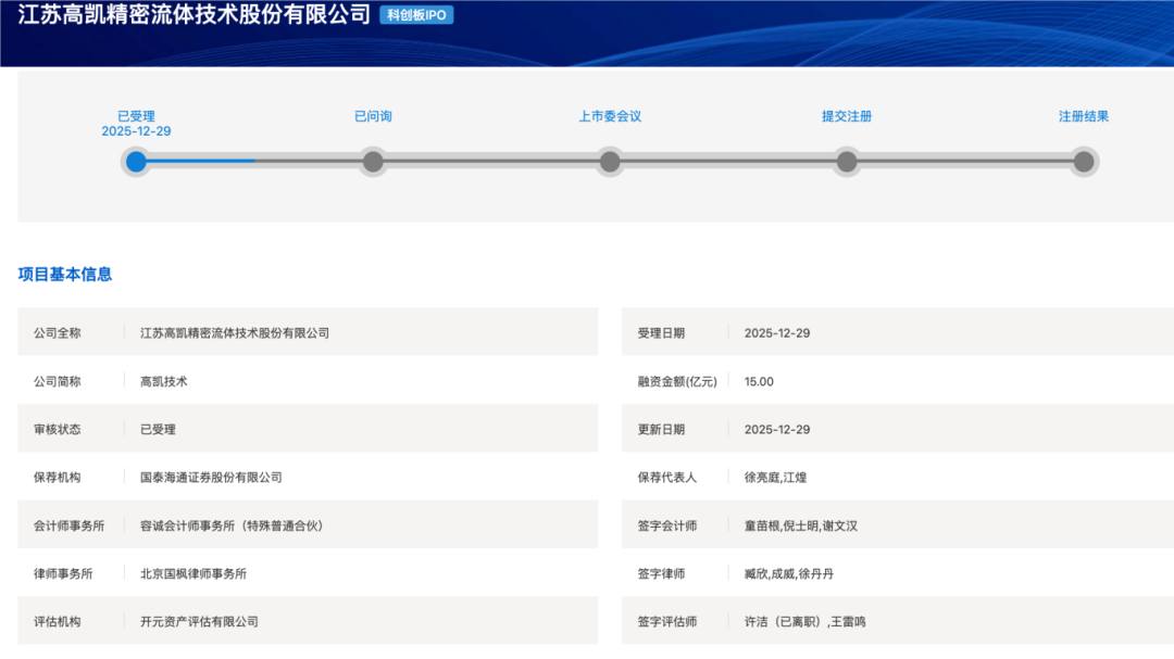 4 、抽签结果中有一家公司是二进宫,江苏高凯精密流体技术股份有限公司2021 年 6 月科创板受理当年就撤回了,这次刚报送几天就被抽中了。