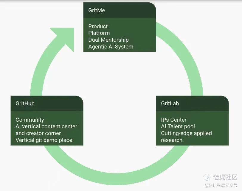 从AI+人才的产品形态来看,GritMe的核心是产品平台,提供 “双导师制”+“自主 AI 系统” 的服务;GritLab作为 IP 中心,包含 AI 人才池 + 前沿应用研究,支撑技术与人才供给;而GritHub是社区载体,涵盖 AI 垂直内容中心、创作者专区、垂直演示平台,负责内容与互动。