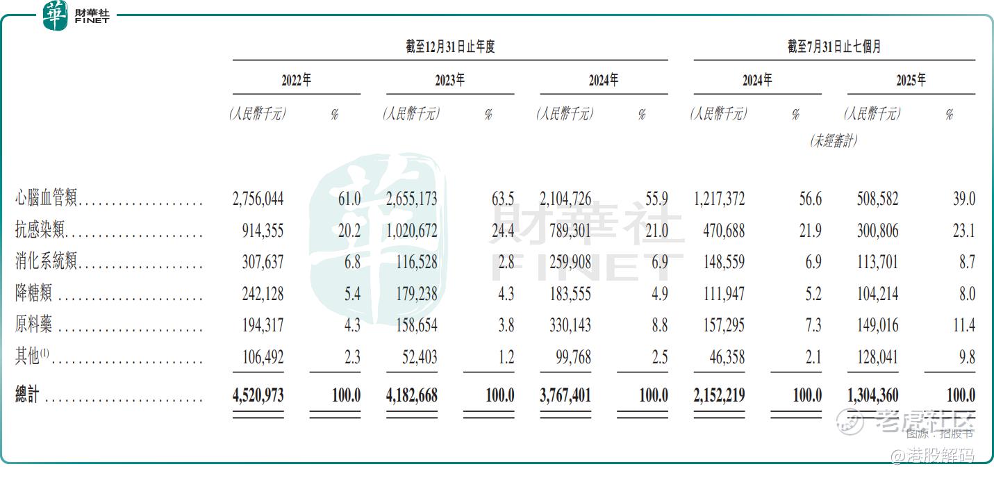 事实上,分领域来看,心脑血管类的收入近年出现大幅下降,2022年时的收入为27.56亿元,占收入比重为61.0%,2025年前7个月降至5.09亿元,占收入比重为39.0%。而悦康通®就是心脑血管类中的核心产品。