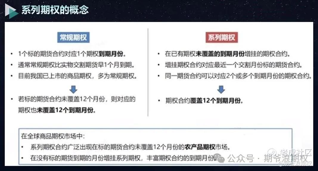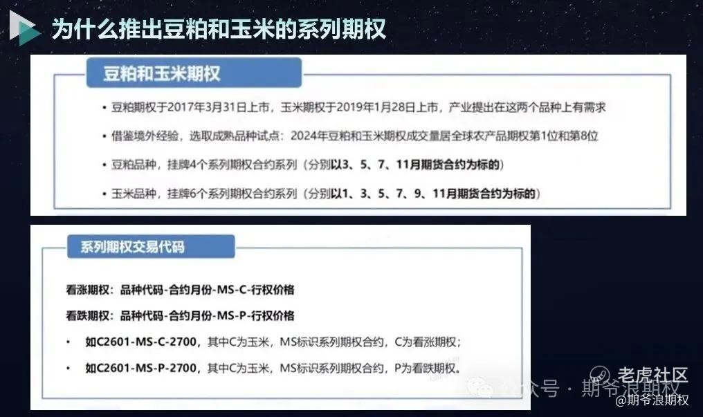 那就先要区分一下豆粕和玉米的“常规期权”和“系列期权”。