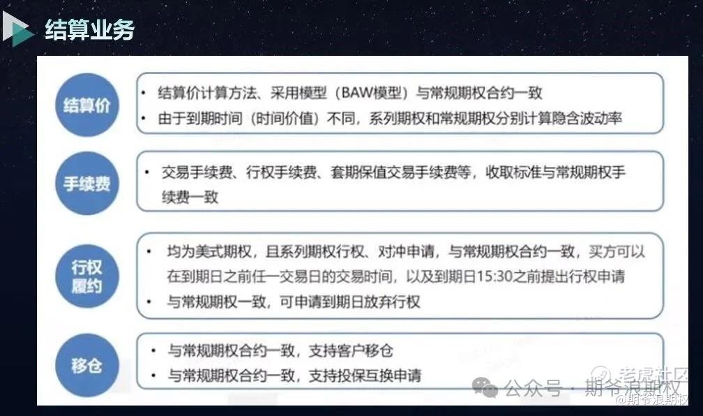 “常规期权”一般会提前1年挂出,而“系列期权”通常在在距离到期日3个月左右挂牌上市,续存时间3个半月。