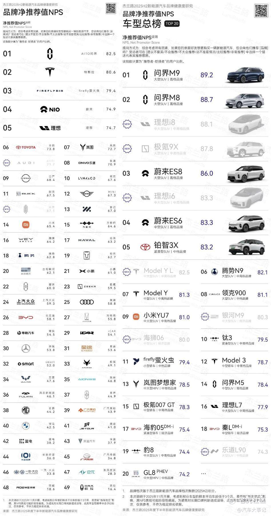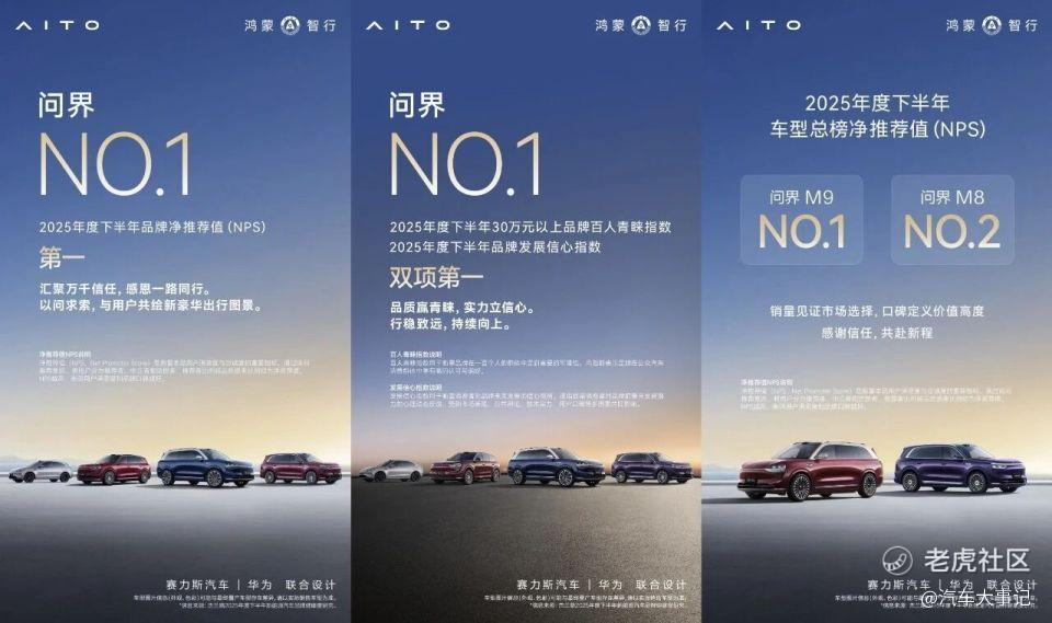 近日,权威市场研究机构杰兰路发布的《2025年度下半年新能源汽车品牌健康度研究报告》中,问界荣获品牌NPS(净推荐值),品牌发展信心指数和30万元以上品牌百人青睐指数三项第一,同时问界也是高端汽车市场中第一个、也是唯一一个连续三次获得品牌发展信心指数第一的品牌。
