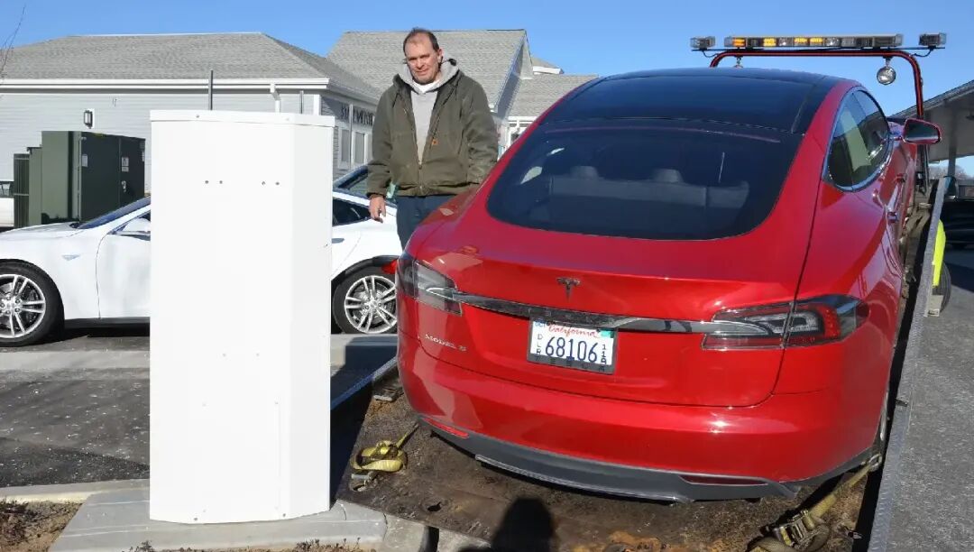 在去程中,他因为害怕掉电太快,把空调调到了最低,结果冻得手脚冰冷,而到了返程时,因为车在户外停了一夜,续航骤降,导致Model S没有把他带回目的地,而是被拖上了板车。